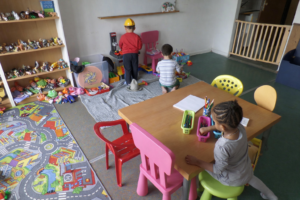 Photo: sessione di Play Therapy di gruppo nel contesto del progetto di INA nei centri di accoglienza per rifugiati in Svizzera